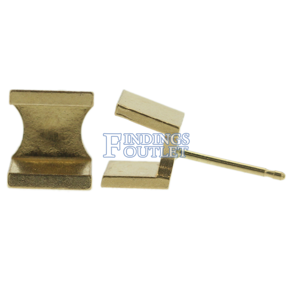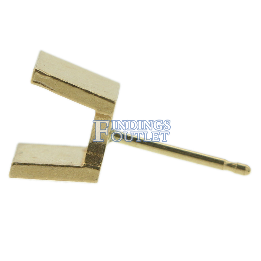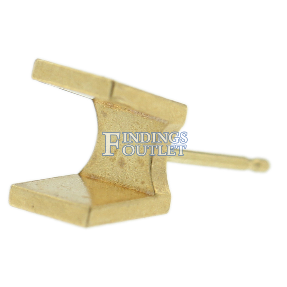 14k Yellow Gold Round Princess Stud Earring Mounting Setting Push Back Post